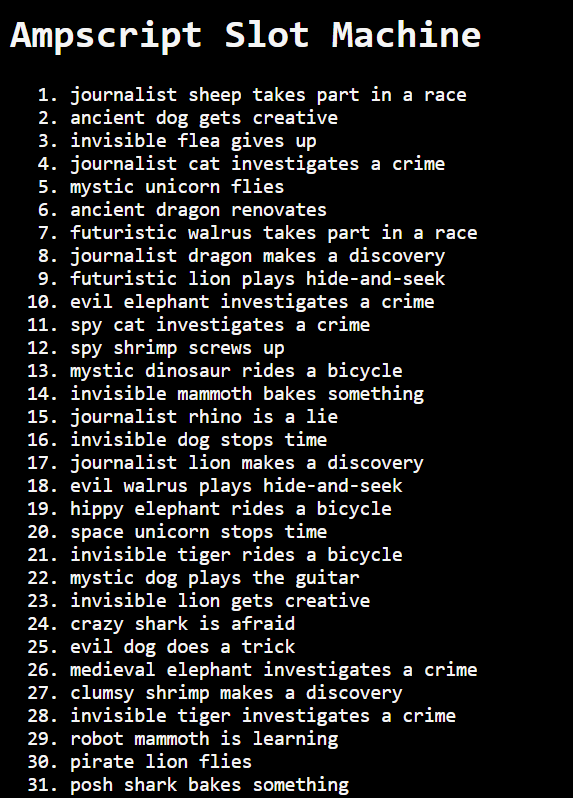 <h1>Ampscript Slot Machine</h1>
